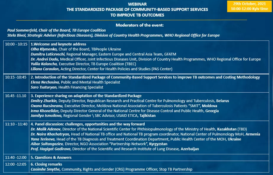 We would like to invite you on presenting the Standardized Package of Community-Based Support Services to Improve TB Outcomes, will take place during high level online event on 📅October 29, 2021 ⏰ at 10:00-12:00 a.m. (Kyiv time).